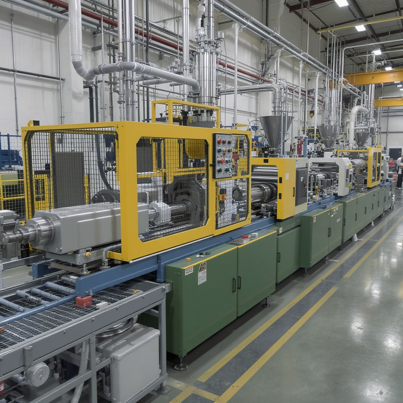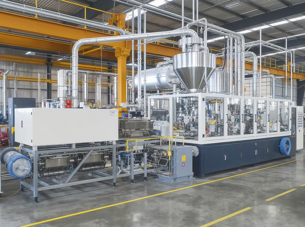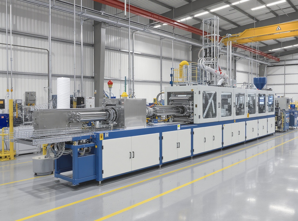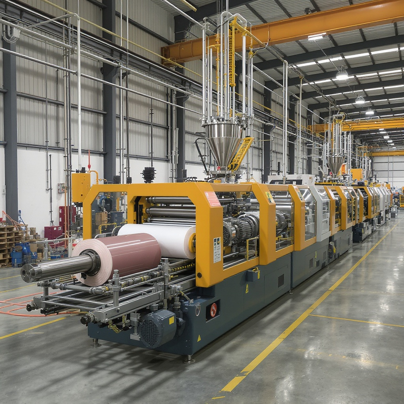 Eine typische Folienextruder-Produktionslinie gliedert sich in Materialzufuhr, Plastifizierzone, Düsenkopf, Kühlung, Weiterverarbeitung, Orientierungs- und Beschichtungseinheiten sowie Abnahme- und Qualitätsinspektion. Der Materialfluss beginnt mit der Zuführung von Granulat, das in der Plastifizierzone erhitzt, gemischt und homogenisiert wird. Die resultierende Schmelze wird durch eine Düse geführt, formt die Folie; je nach Prozess handelt es sich um Blas- oder Cast-Folienextrusion. Die Folie wird gekühlt, orientiert und ggf. beschichtet, bevor sie in Rollen gewickelt wird. Die Linienintegration umfasst Steuerungssysteme, Sensorik, Wartungspunkte, Recycling- oder Downstream-Anlagen zur Weiterverarbeitung. Gängige Layouts berücksichtigen Standort, Brandschutz, Sicherheitsnormen und Wartungsintervalle. Kundenspezifische Linien optimieren Durchsatz, Qualität und Energieeffizienz, Schnittstellen erleichtern Integration weltweit.